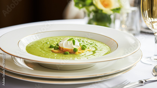Pea cream soup in a restaurant, English countryside exquisite cuisine menu, culinary art food and fine dining