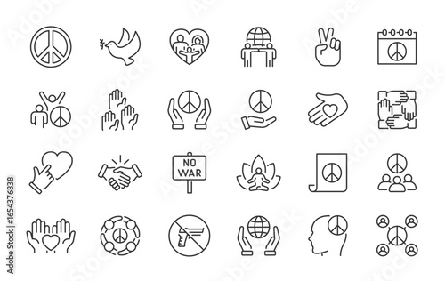 Peace web icons in line style. Moral, no war, freedom, harmony, peace day, dove, collection. Vector illustration.