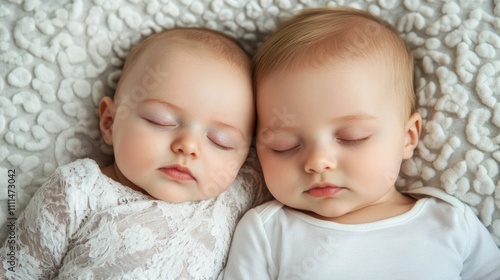 Peaceful Bedtime Comfort and Nurturing Care Among Sleeping Siblings A heartwarming scene of two young children snuggled together in a cozy tranquil bedroom setting showcasing the intimacy love