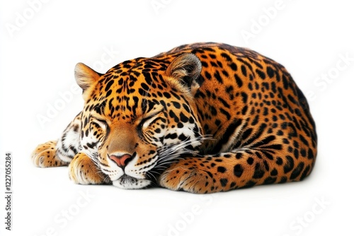 jaguar, sleeping, wildlife, animal, cat, big cat, predator, nature, wild, mammal, spot, fur, coat, rosette, eyes closed, peaceful, serene, relaxing, closeup, white background, isolated, brown