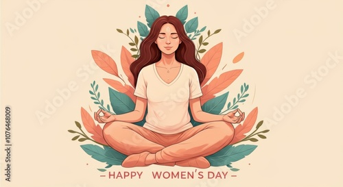 meditation, woman, nature, celebration, woman, international, peaceful, yoga, leaf, floral, relaxation, calm, mindfulness, spirituality, wellness, harmony, zen, serenity, female, calmness, illustration, empowerment, happiness, inner peace, oneness, balance, mental health, strength, joy, appreciation, diversity, art, femininity, connection, inspiration, growth, beauty, cultural, festive, vibrant