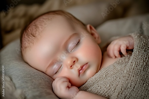 Peaceful Newborn Baby Sleeping in Beige Swaddle