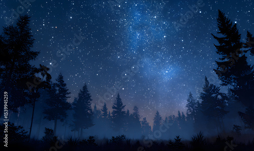 Peaceful starry night sky filled with countless sparkling stars and silhouetted trees serene and mystical natural landscape for relaxation and inspiration. generative ai