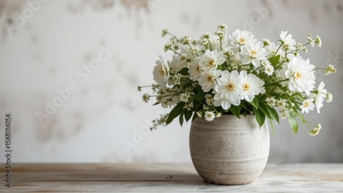 Peaceful White Flowers in Decorative Pot - Soft Background