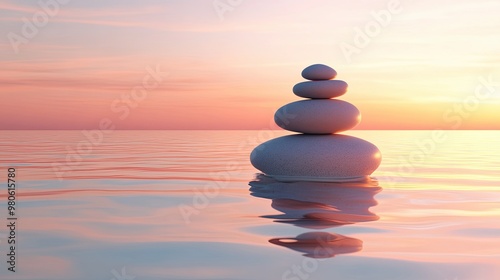 Peaceful Zen Stones Stacked in Serene Water at Sunset