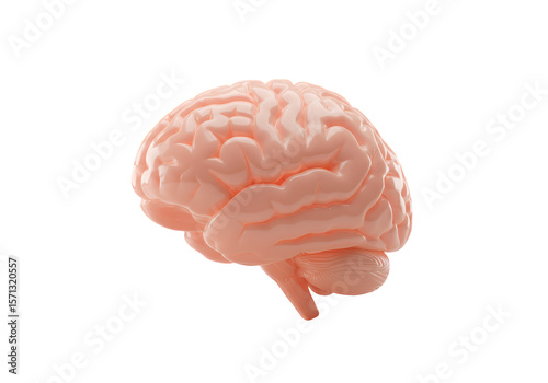Peach Colored Human Brain Model Digital Rendering Isolated on Transparent Background
