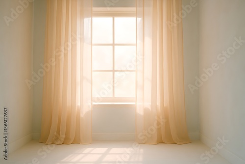 curtain, sheer, peach, window, light, sunlight, room, interior, empty, minimalist, airy, soft, pale, semitransparent, fabric, drape, home, decor, design, background, texture, space, clean, bright, natural light, floor, wall, house, architecture, apartment, parquet, nobody, new, door, indoor, open, living, inside, three-dimensional, bedchamber, view, hall