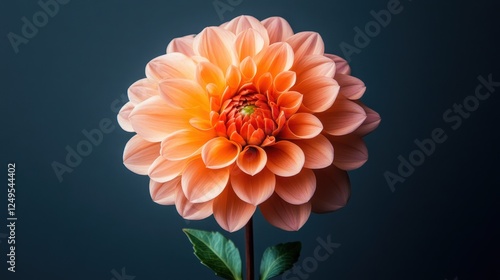 dahlia, flower, bloom, peach, studio, shot, floral, blossom, plant, nature, beauty, garden, botany, spring, summer, autumn, colours, macro, closeup, photo, image, background, design, texture, wallpaper, decoration, art, still, life, elegance, delicate, soft, high-coloured, bright, fresh, vibrant, romantic, peaceful, serenity, botanical, flora, green, orange