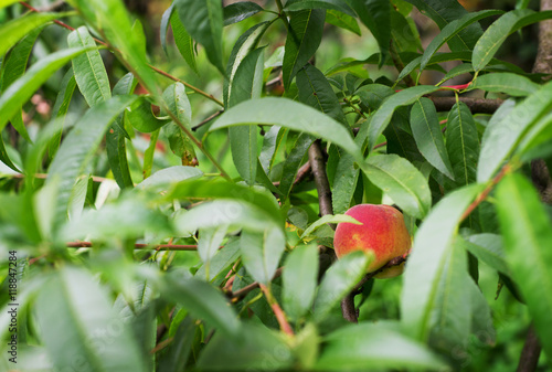 Peach fruit tree closeup detail leaf