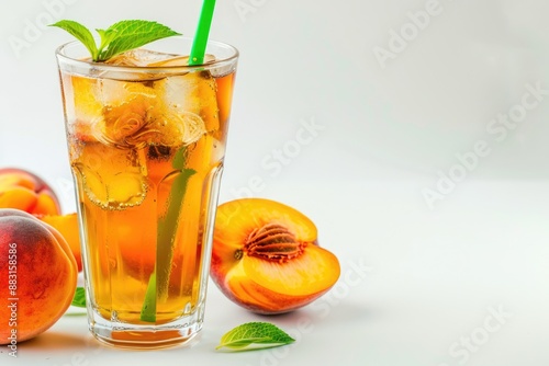 iced, tea, peach, drink, mint, ice, glasses, straw, summer, refreshing, beverage, fruit, cold, sweet, delicious, healthy, yellow, green, white, background, texture, food, photo, still, life, fresh, natural, juicy, organic, citrous, ripe, beautiful, tasty, cool, quench, thirst, aromatic, light, sparkling