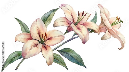 lily, watercolor, flower, bouquet, peach, floral, illustration, painting, art, design, botanical, blossom, bloom, spring, summer, nature, beauty, elegance, delicate, romantic, pastel, soft, light, plant, floral arrangement, floral pattern, wedding flowers, anniversary, celebration, greeting card, invitation, background, texture, pattern, wallpaper, print, artwork, decorative