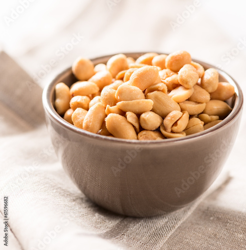 peanuts in a bowl on tablecloth square
