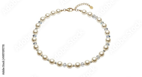 pearl, necklace, crystal, jewellery, fashion, accessory, bead, gold, elegant, white, shiny, glamour, style, chain, luxury, delicate, displayed, product, shot, feature, alternating, small, connected, with, clasp, lighting, bright, even, highlighting, environment, simple, clean, background, angle