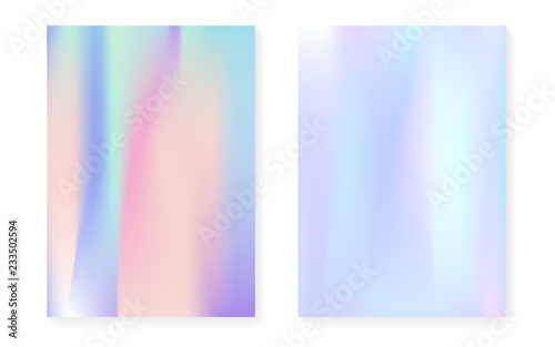 Pearlescent background with holographic gradient. Hologram cover set. 90s, 80s retro style. graphic template for placard, presentation, banner, brochure. Rainbow pearlescent background set.