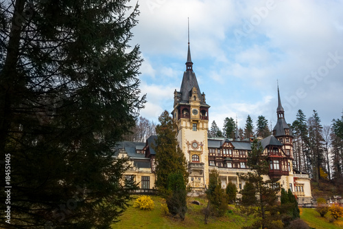 Peles castle, Sinaia, Romania on a beautiful autumn day