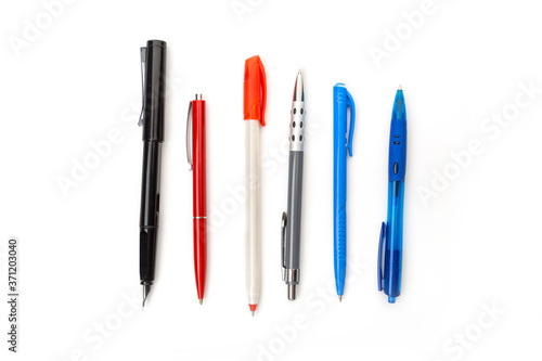 single, luxury, subject, group, writing, metallic, ball, learn, graphite, object, instrument, set, business, steel, eraser, ink, plastic, yellow, red, crayons, pen, white, isolated, office, background, school, equipment, design, education, write, sharp, wood, object, tool, study, silver, tip, work, closeup, college, black, draw, metal, art, drawing, supply, blank, ball pen, blue