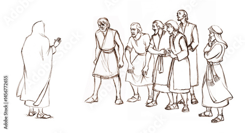 abraham, ancient, antique, apostle, arab, conversation, belief, believe, bible, biblical, jesus christ, christian, crowd, drawing, east, eastern, graphic, group, historic, history, human, illustration, isolated, israel, israeli, jesus christ, jewish, judaism, look, male, mediaeval, meeting, man, mose, muslim, old, people, pray, prayer, preacher, prophet, religion, religious, talk, speak, society, solution, together, vintage