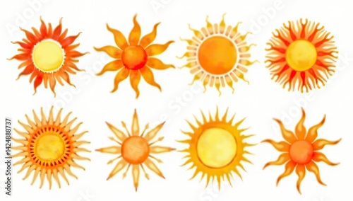 sun, summer, icon, vector, symbol, set, design, yellow, illustration, sunlight, signs, weather, art, nature, flower, collection, element, sunbeam, orange, pattern, heat, sunny, star, light, decoration