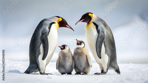penguin, snow, playing, baby, white background, animal, antarctic, cute, winter, family, happiness, joy