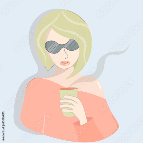 portrait, stylish, girl, drinking, hot drink, woman, sexy, lady, young, pastel, cute, enjoy, beverage, beauty, fashion, goggles, happiness, mug, cafes, yellow, illustration, female, drink, cup, design, vector, hair, urban, beautiful, tea, leisure, rest, weekend, good-looking, colours, cheerful, wellness, relax, relaxation, well-being, attractive, feminine, steam, pensive