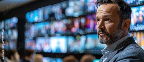 man, bearded, technology, broadcasting, business, pensive, professional, modern, studio, news, sharpened, candid, workplace, communication, entertainment, emotion, introspection, lighting, videography, male, middle-aged, concentration, surveillance