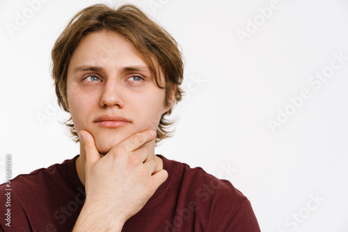 Pensive young man thinking isolated over background