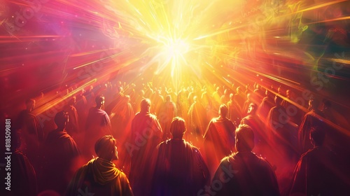 pentecost the descent of the holy spirit on the apostles vibrant digital illustration with glowing light rays