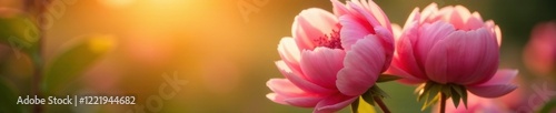Peony blossoms in warm sunlight with delicate texture, bloom, flowers, still life