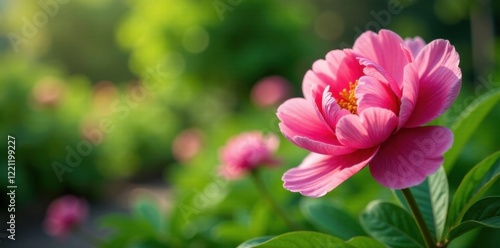 Peony flowers in a lush green garden , garden, foliage