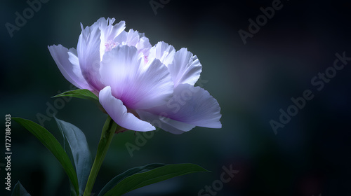 Peony in Bloom: A delicate peony flower, in full bloom, reveals its exquisite petals in a soft, ethereal light against a blurred background, evoking a sense of serenity.
