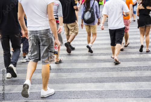People are crossing road at the crosswalk