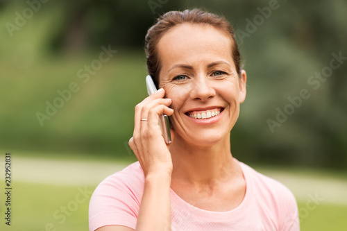 woman, smartphone, communication, calling, technology, summer, park, happy, smiling, portrait, people, middle-aged, 40s, summer, person, beautiful, outdoors, female, concept, cheerful, joyful, nice, pretty, adult, leisure, lifestyle, talking, call, contraption, mobile phone, mobile, mobile phone, phone, conversation