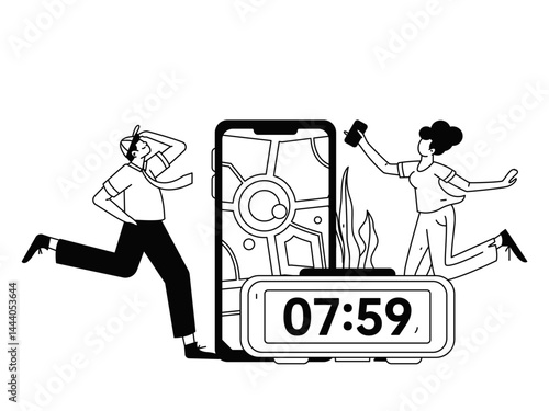 People exercising healthy running vector internet operation illustration