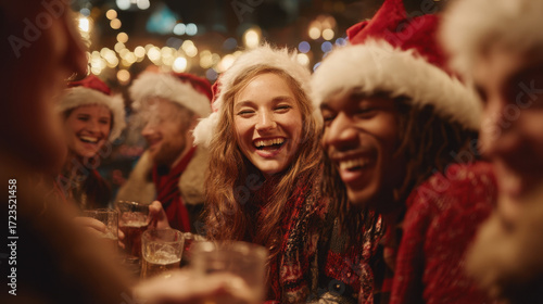 People in Santa Hats at Christmas Party – Holiday Celebration Photo