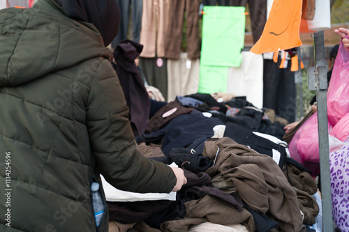 shopping, small business, selling, old-fashioned, merchandise, outdoors, seller, street market, horizontal, flea market, market stall, lifestyle, fashion, day, color image, business, clothing, stack, old, store, buying, colours, choosing, consumerism, design, dress, environmental conservation, many-coloured, retail, photo, sale, street, browse, browsing, buyer, clothes, cheap, clothes, hand, discount, flea, finding, looking, second hand