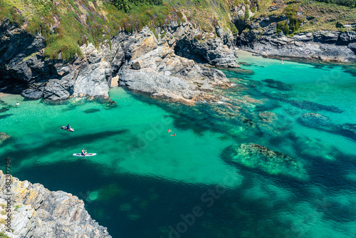 People on padelboards, Piskies Cove, South West Coast Path, Penzance, Cornwall, England