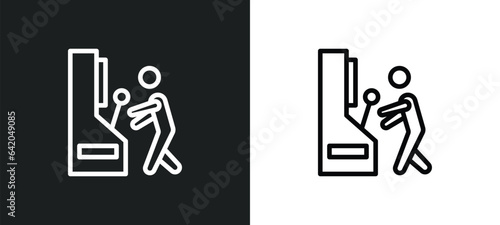 people playing arcade game icon isolated in white and black colors. people playing arcade game outline vector icon from recreational games collection for web, mobile apps and ui.