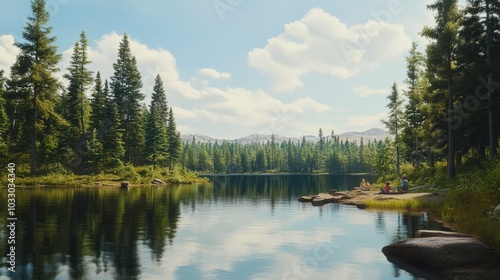 lake, forest, tree, water, nature, mountain, sky, cloud, green, blue, summer, peaceful, serene, calm, tranquil, scenic, beauty, landscape, relaxation, wilderness, park, wood, picturesque, evergreen, idylli, get-away, picnic, adventure