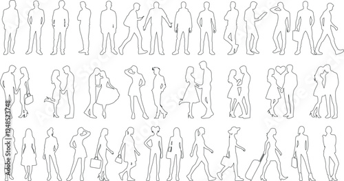 people, vector, outline, line art, man, woman, couple, line, art, walking, standing, talking, silhouette, shopping, romance, minimalist, fashion, urban, lifestyle, seamless, pattern, artistic, drawing, modern, abstract, hand-drawn, vignetting, elegant, lover, friends, business, casual attire, stylish, trendy, human relationships, interaction, simple, crowd, group, posture, movement, social, communication, city, pedestrian, isolated, contemporary, digital, creative