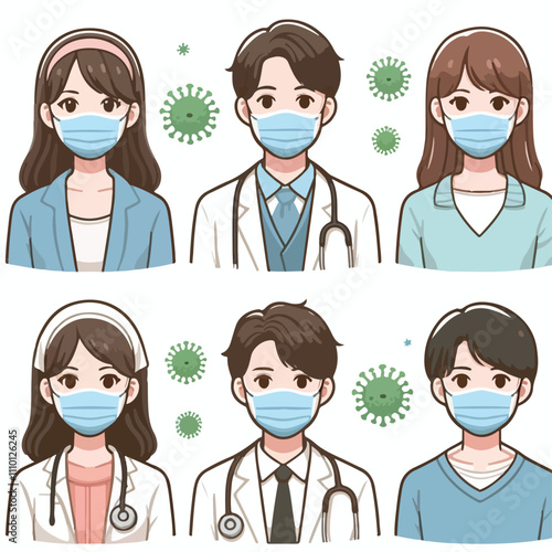 People with medical face mask coronavirus vector image icon on a white background