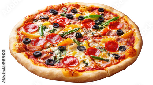 Pepperoni and Olive Pizza Slice isolated on a transparent background