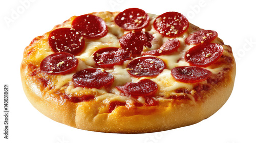 Pepperoni Pizza Delight: A close-up shot showcases a freshly baked, single-serving pepperoni pizza, promising a burst of flavors and satisfying textures, a delicious culinary creation.