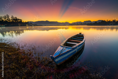 Perahu di Danau, Suasana sunrise di Situ Cileunca Pangalengan Bandung