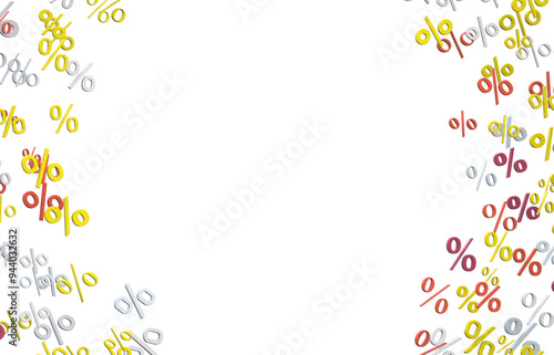 percent, price, financing, loan, credit, mortgage, trust, sale, confetti, rain, percentage, black, friday, shop, shopping, marketing, discount, offer, offering, rebate, advertise, advertisement, banner, template, layout, illustration, three-dimensional, white