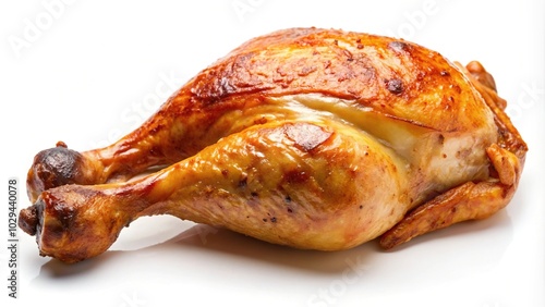 Perfectly cooked roast chicken drumstick isolated on white background