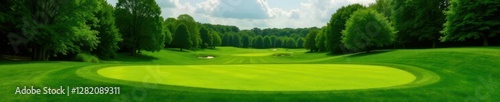 Perfectly manicured golf course green, lush grass, landscape, pasture