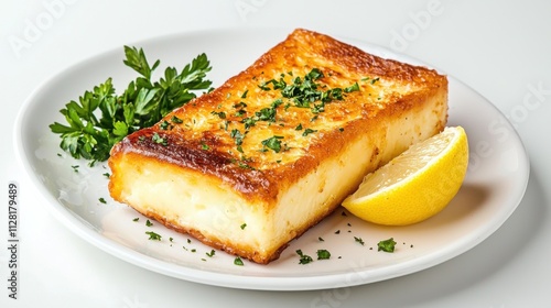 food, dish, meal, cookery, culinary, seafood, fish, snapper, fillet, lemon, parsley, plate, white, background, garnish, cooking, epicure, delicious, appetising, healthy, fresh, eatery, cafes, menu, receipe, ingredient, savoury, nourishment, serve, presentation, fine dining, accessing, protein, sea, citrous, herb, tableware, tabletop, studio, light, photo, still life, culinary arts, food photography, gastronomy, dining
