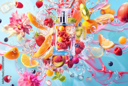 Perfume concept blending abstract art and luxurious fragrance elements