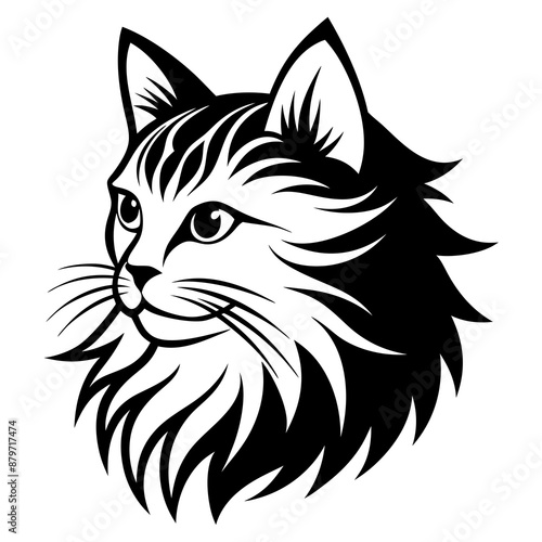 Persian cat face logo vector silhouette on white background