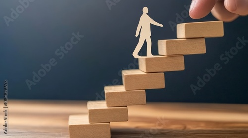 person, figure, silhouette, step, stair, wooden, block, climb, ascending, success, achievement, growth, progress, career, advancement, ambition, goal, objective, target, ladder, pathway, journey, path, development, future, opportunity, potential, elevation, rise, upward, movement, motivation, inspiration, aspiration, reaching, striving, determination, effort, perspective, vision